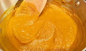 - Place the mixture in a saucepan, and simmer it over low heat until it forms a paste