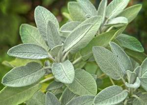- Leaves: The leaves of sage are gray-green and woolly. They are thick, oblong, opposite, with pointed tips. Strongly aromatic, the leaves reach 2 to 3 inches long.