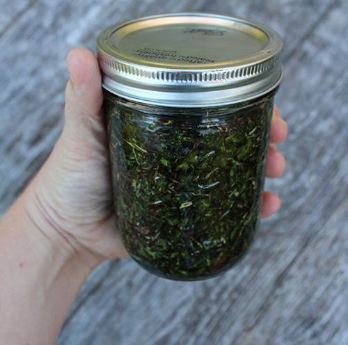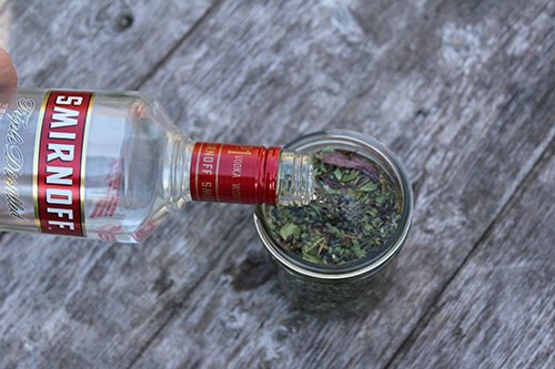 The folk method of tincture, which is by far the most popular for home use, takes this into account and skips weighing and measuring the herbs. Just pack the herbs into a jar, and cover completely with a neutral alcohol, such as vodka.