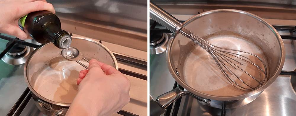 - Add the coconut oil and whisk it in well