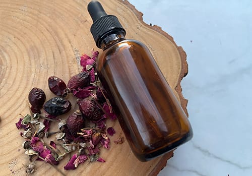 Rosemary extract: You can infuse rosemary or rosemary extract to your rosehip oil if you are looking for a potent antioxidant that is particularly beneficial for acne-prone skin. Like the calendula oil, it always helps to do a small allergy spot test of rosemary on your skin before use.