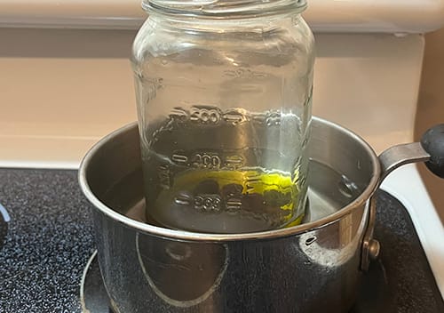 - Fill a pot with enough water to submerge approximately half of your jar.