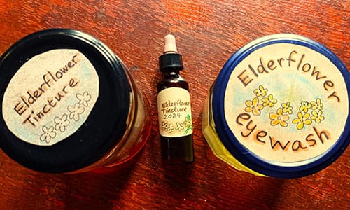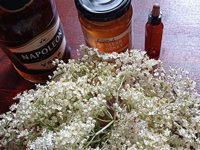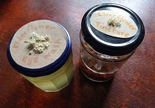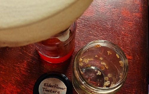 If you have elderflowers in your backyard it helps because you need to pick 3 separate bunches of flowers over the period you make the tincture. You can also use dried flowers. Just increase the alcohol content because fresh flowers will contain some water, whereas dried flowers do not.